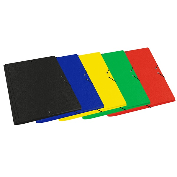 Carpeta gomas de cartón gofrado nº 10 en colores intensos con 3 solapas y gomas de cierre.