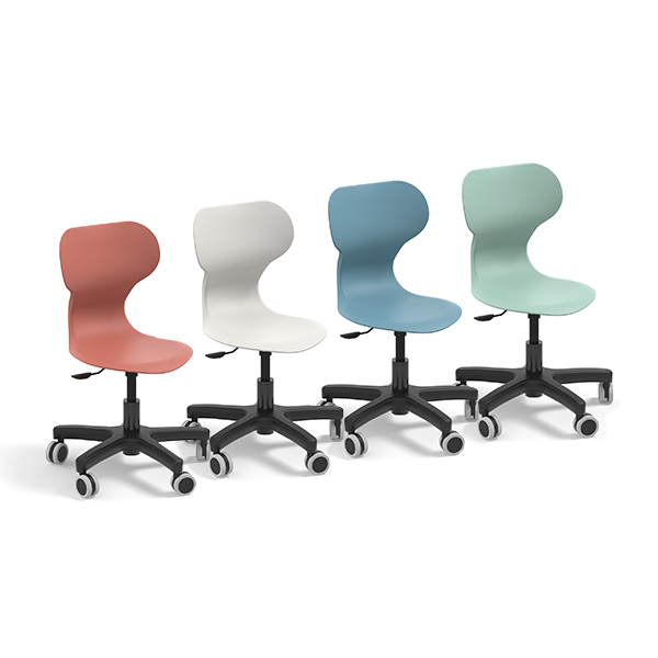 Silla giratoria con ruedas especial para educadores. Permite trabajar a la misma altura que las mesas infantiles.